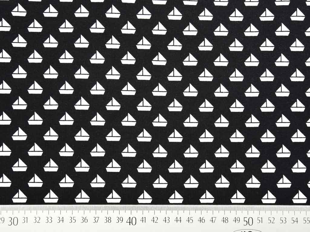 Ein weicher Baumwolljersey in schwarz mit kleinen weißen Segelbooten.