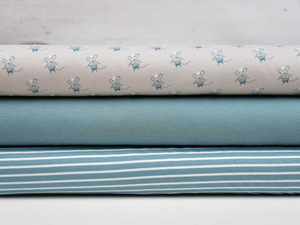 Kleine Mäuse-Jungen für starke Jungs! Dieser fabrlich zurückhaltende Allover Print lässt sich wunderbar mit kräftigeren Farben aus allen Farbfamilien nach belieben kombinieren. Tolle Outfits für Babies und Kleinkinder lassen sich mit dem anschmiegsamen Interlock Jersey nähen und gestalten, ebenso wie tolle Accessoires.