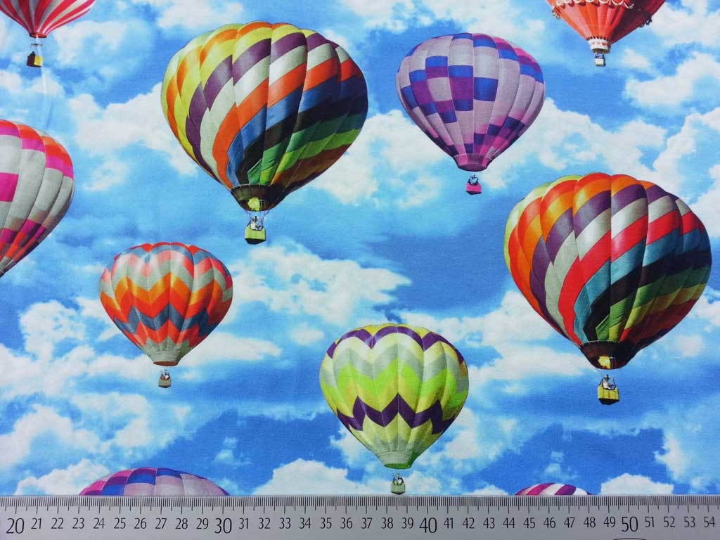 Ein weicher Jersey mit wunderschönen Heißluft Ballong in bunten Farben, als Digitaldruck gestochen scharf!