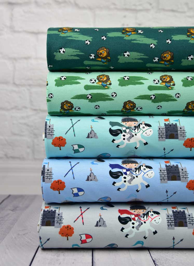 Ein weicher Baumwolljersey in hellgrün mit Fußball spielenden Löwen. Einfach so süß!