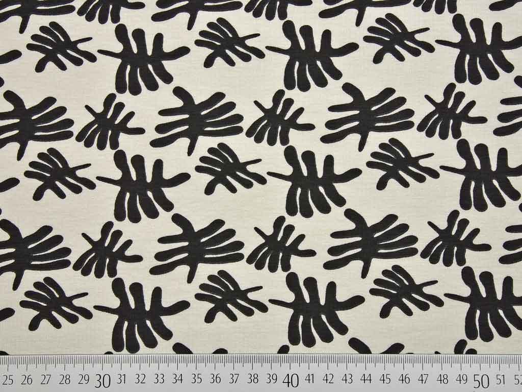 Ein weicher Baumwolljersey aus dem Hause Stenzo in ecrue mit schwarzen stilisierten chinesischen Zeichen.