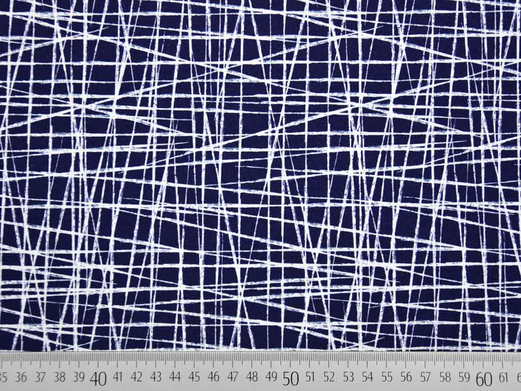 Ein weicher Baumwolljersey in dunkelblau mit wilden weißen Linien.