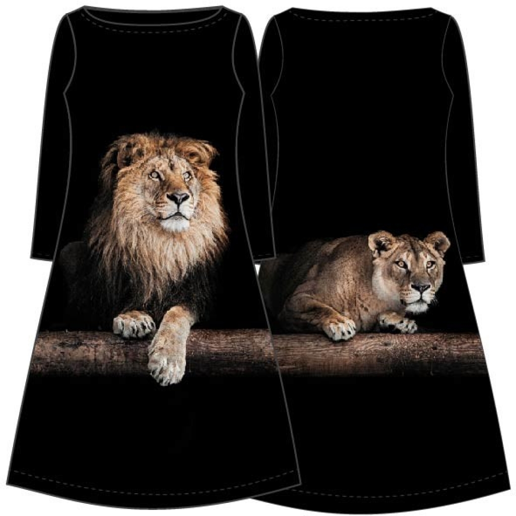 Ein weicher Jersey als Digitaldruck aus dem Hause Stenzo in nachtblau mit beeindruckendem Löwenpärchen. EIn Panel ist insgesamt 108 cm hoch und 155 cm breit. Die beiden Löwen liegen auf einem durchgehenden Baumstamm und sind jeweils inkl. Baum ca. 54 cm (Männchen) und ca. 30 cm (Weibchen) hoch.