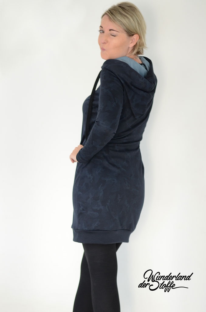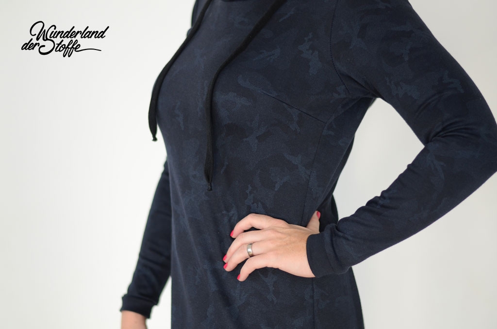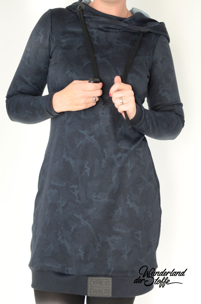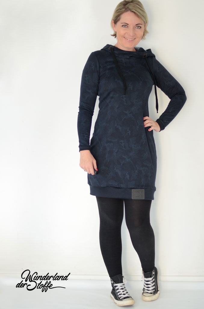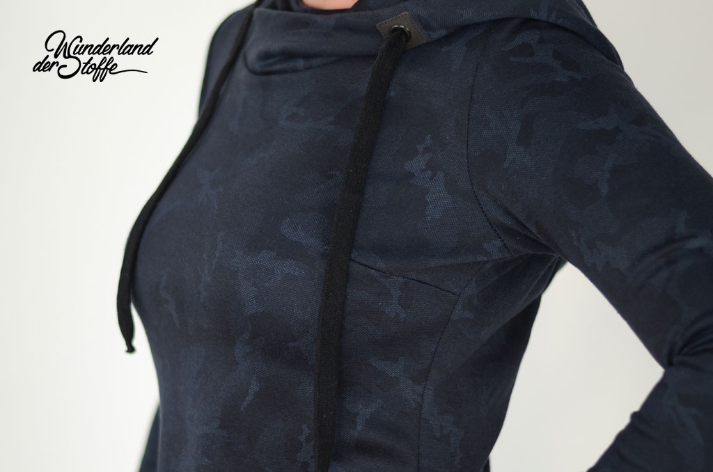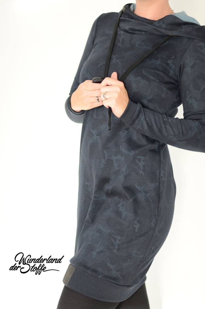 Ein schwerer und hochwertiger Punto di Roma Jersey mit dezentem Camouflage Muster in nachtblau (blauschwarz) mit petrol und Grautönen.