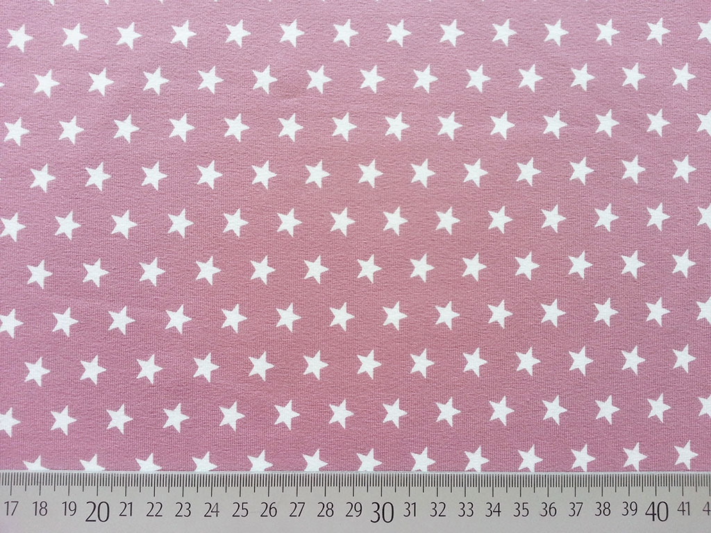 Ein weicher Jersey in altrosa mit 1 cm großen weißen Sternen.