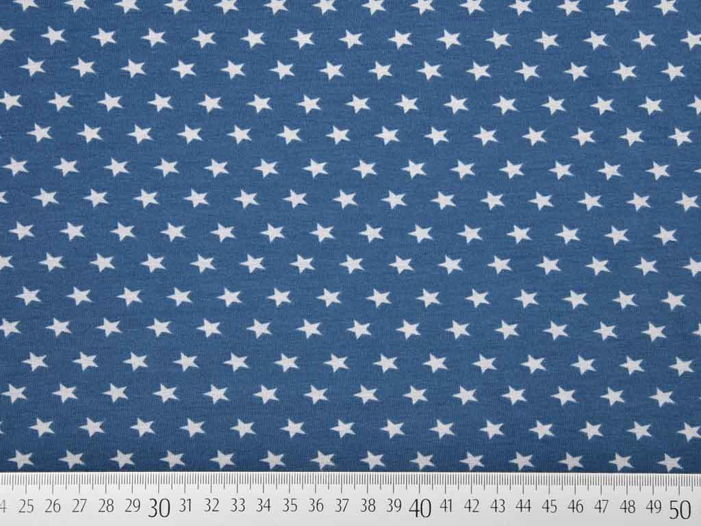 Ein weicher Jersey in jeansblau mit kleinen grauen Sternen(0,8cm).
