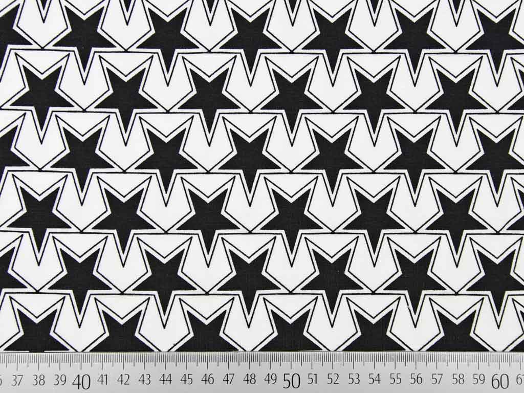 Ein weicher Baumwolljersey in weiß mit schwarzen, umrandeten Sternen. Einfach super lässig!