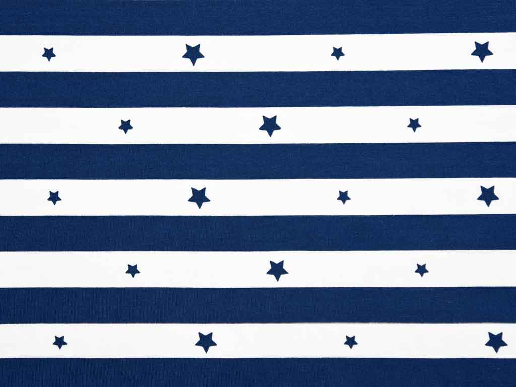 Jersey Blockstreifen 2 cm & Sterne , dunkelblau