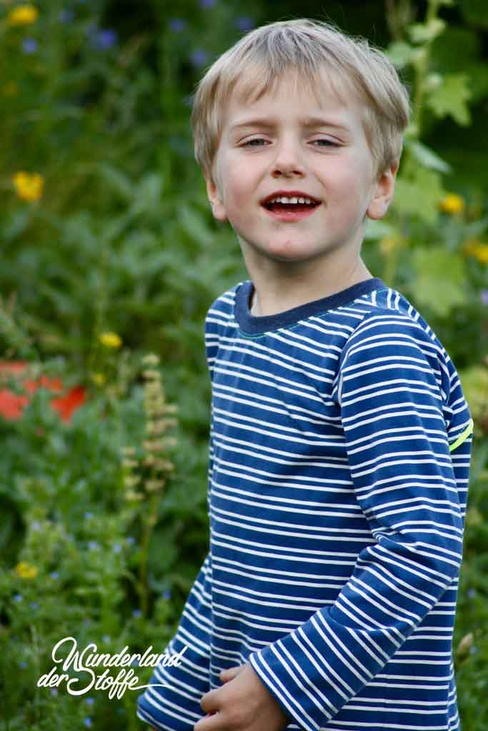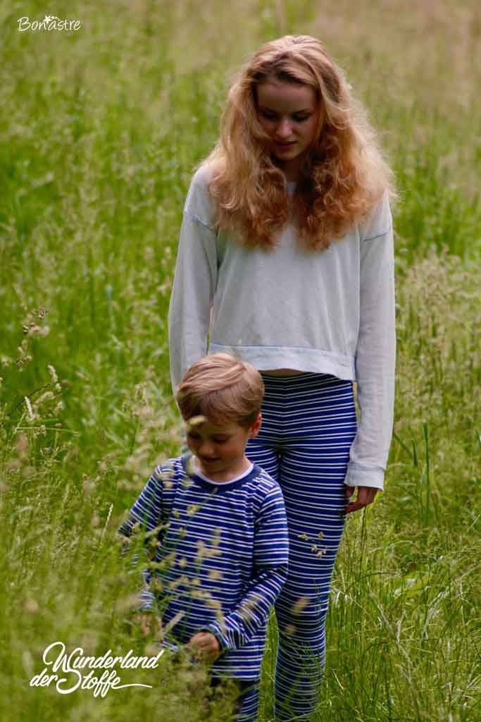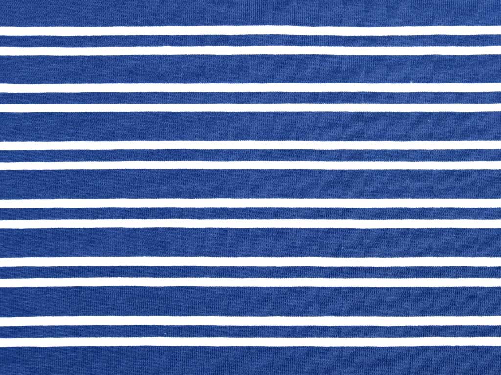 Ein weicher Baumwolljersey in dunkelblau mit weißen Doppelstreifen.