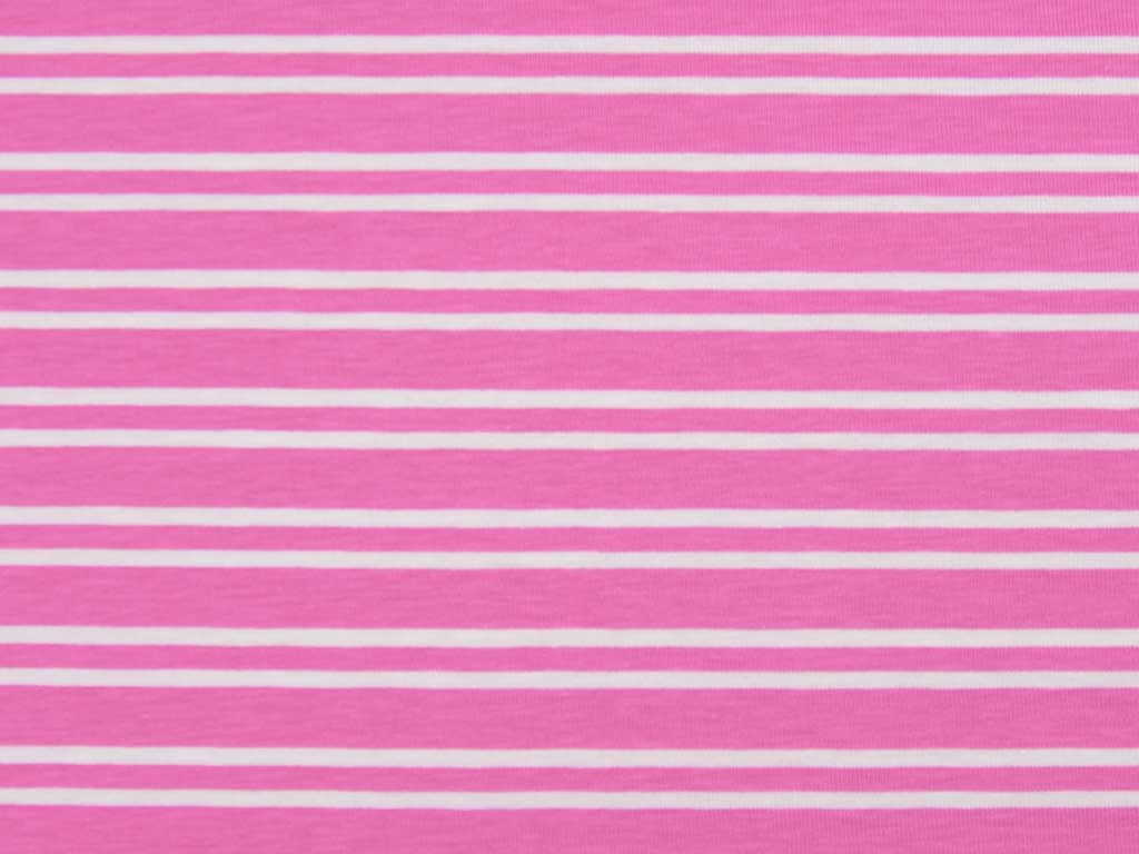 Ein weicher Baumwolljersey in rosa mit weißen Doppelstreifen.
