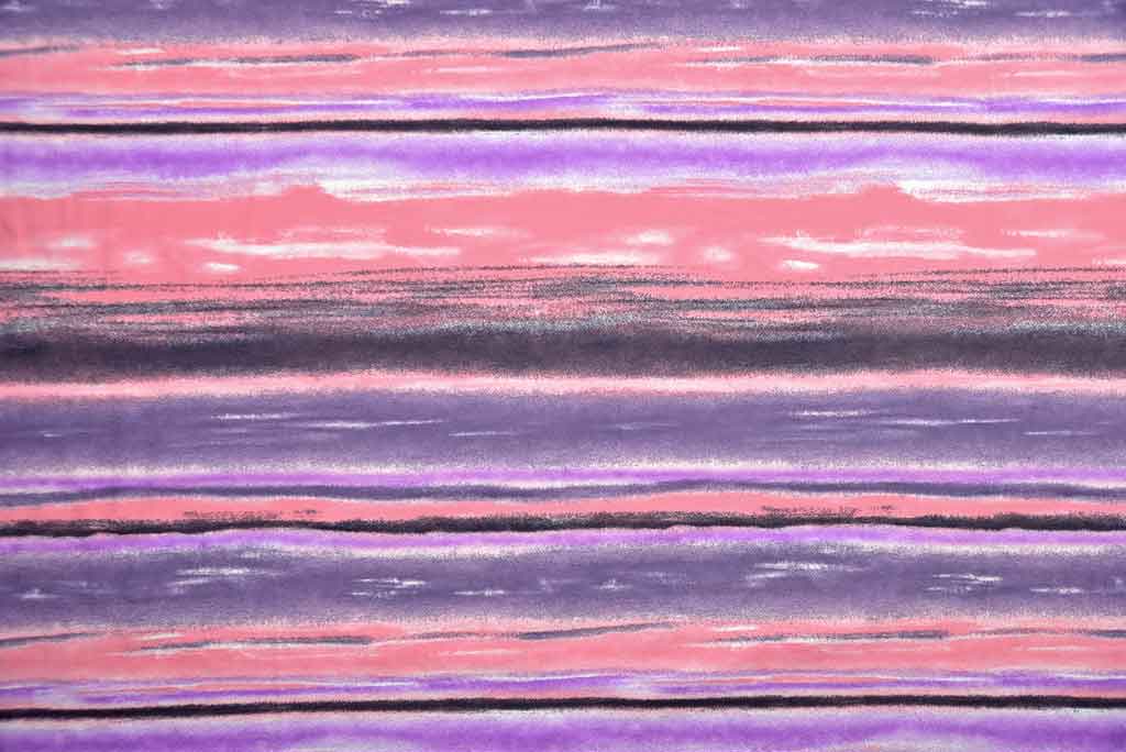 Ein weicher Baumwolljersey mit Streifen in apricot, grau, lila und flieder. Die Streifen sehen aus als wären sie mit Wasserfarben aufgemalt.