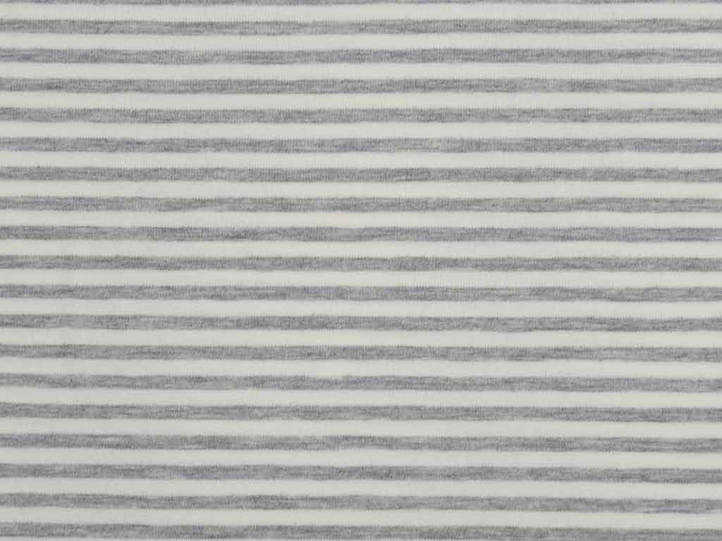 Ein kuschelweicher Jersey mit leicht samtiger Oberfläche in grau meliert-weiß gestreift. Die Streifen sind ca. 4mm breit. Die Vorderseite ist leicht angeraut, somit ensteht die weiche Haptik.