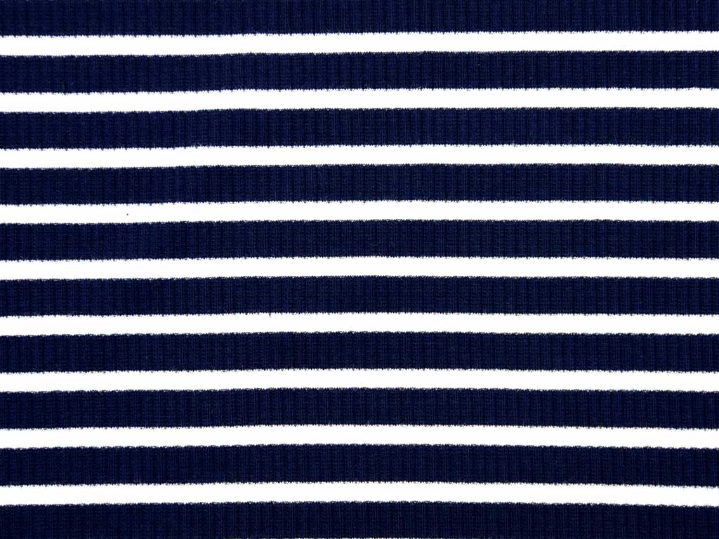 Ein elastischer Rippenjersey in dunkelblau mit weißen Streifen.