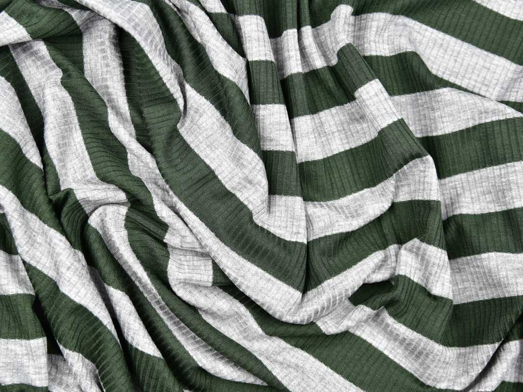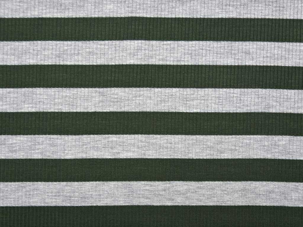 Ein weich fließender Rippenjersey mit 2,5 cm breiten Blockstreifen in khaki und grau melange.