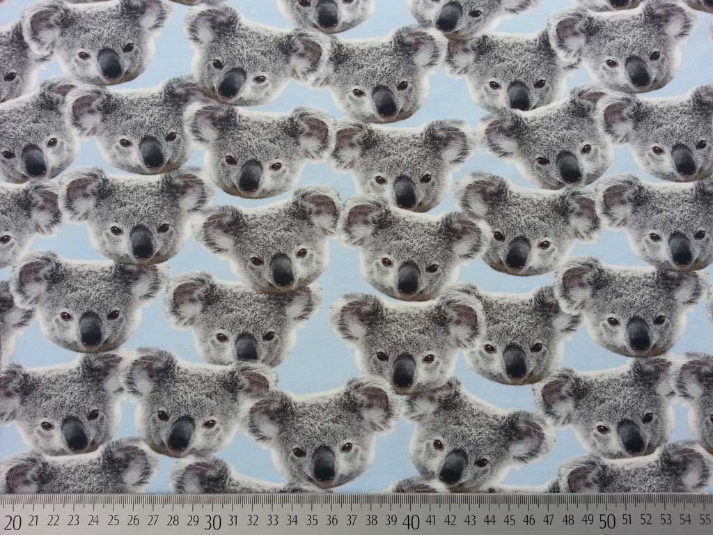 Ein weicher Jersey in hellblau mit süßen Koala Bären als Digitaldruck.