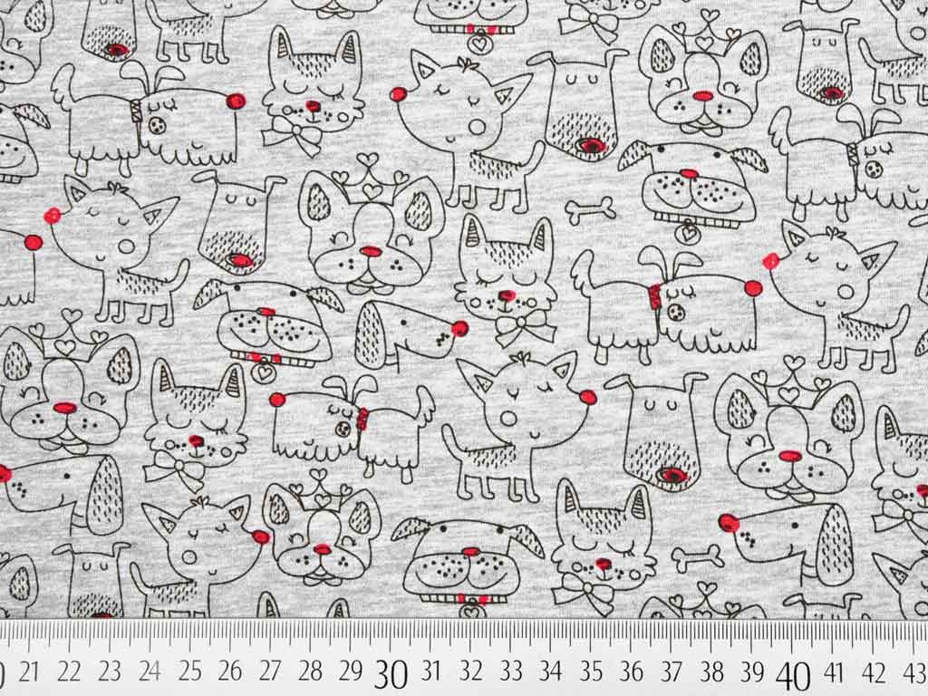 Ein super süßer Jersey in trendigem Grau melange mit kleinen Doodle Hunden.