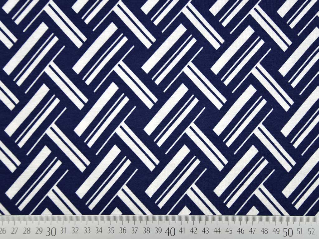 Ein weich fließender Viskosejersey in dunkelblau mit cremeweißem Webmuster.
