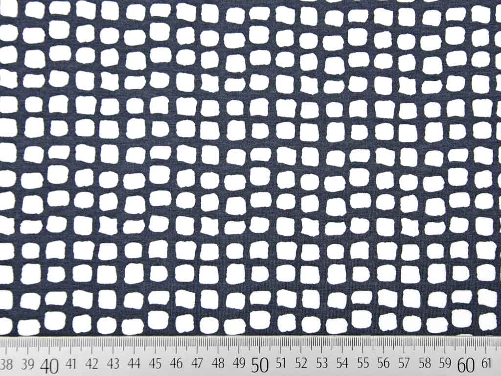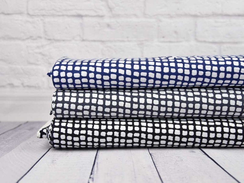 Ein weich fließender Viskosejersey in dunkelgrau mit kleinen, weißen Quadraten.