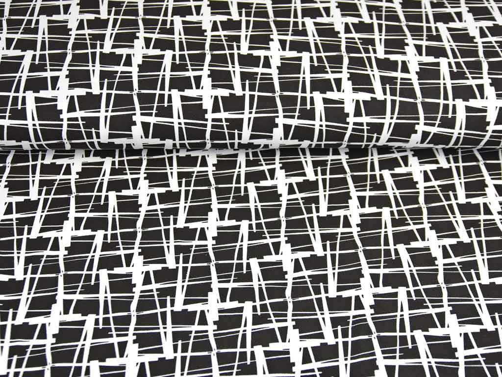 Viskosejersey grafisches Muster, weiß schwarz