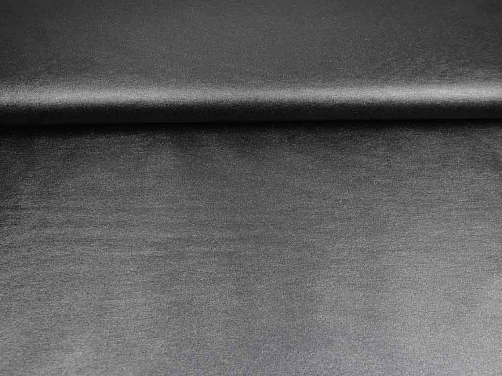Ein trendiger Jeggings Stoff (Jersey) in schwarz mit feinem silbrigem Glitzer und weicher Beschichtung. Der Stoff ist weich, elastisch (längselastisch) und geschmeidig. Die Rückseite ist nicht beschichtet.