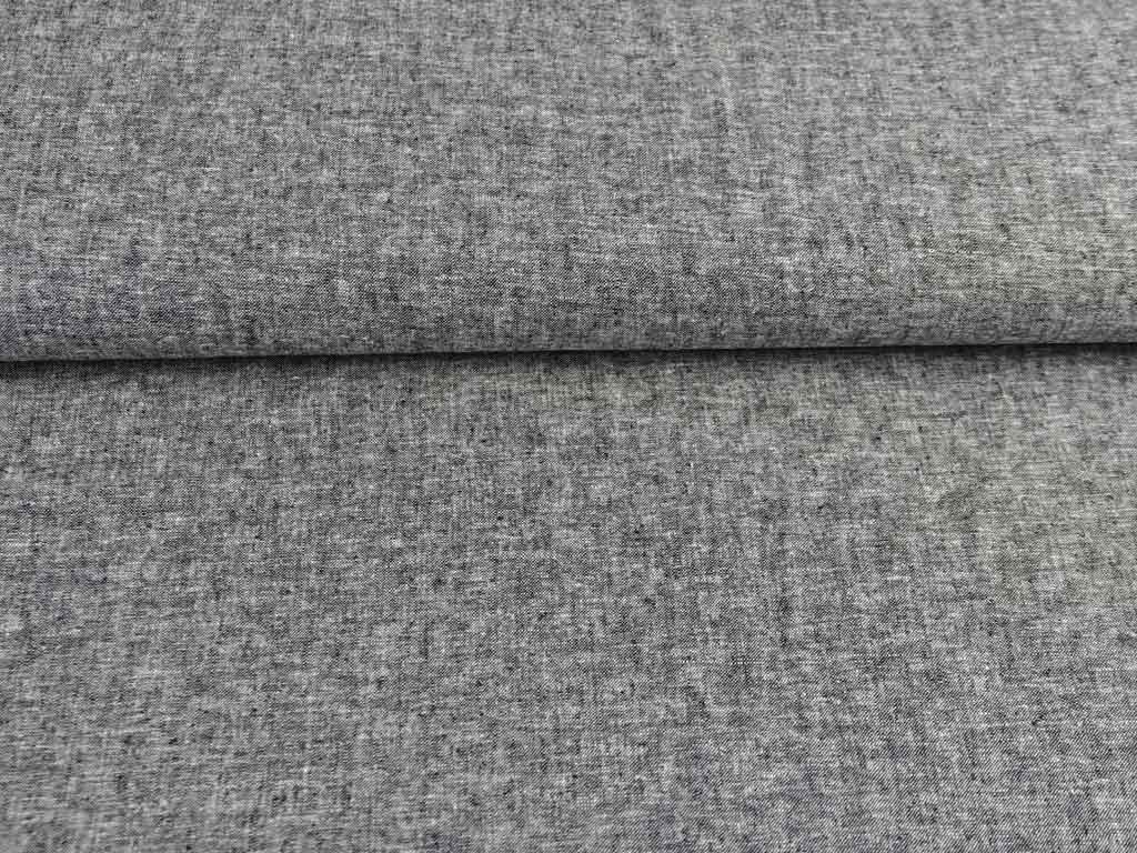 Ein schwarz weiß melierter Viskose Leinenstoff. Aufgrund des Viskoseanteils hat der Stoff einen weichen Griff und knittert nicht so stark wie reines Leinen.