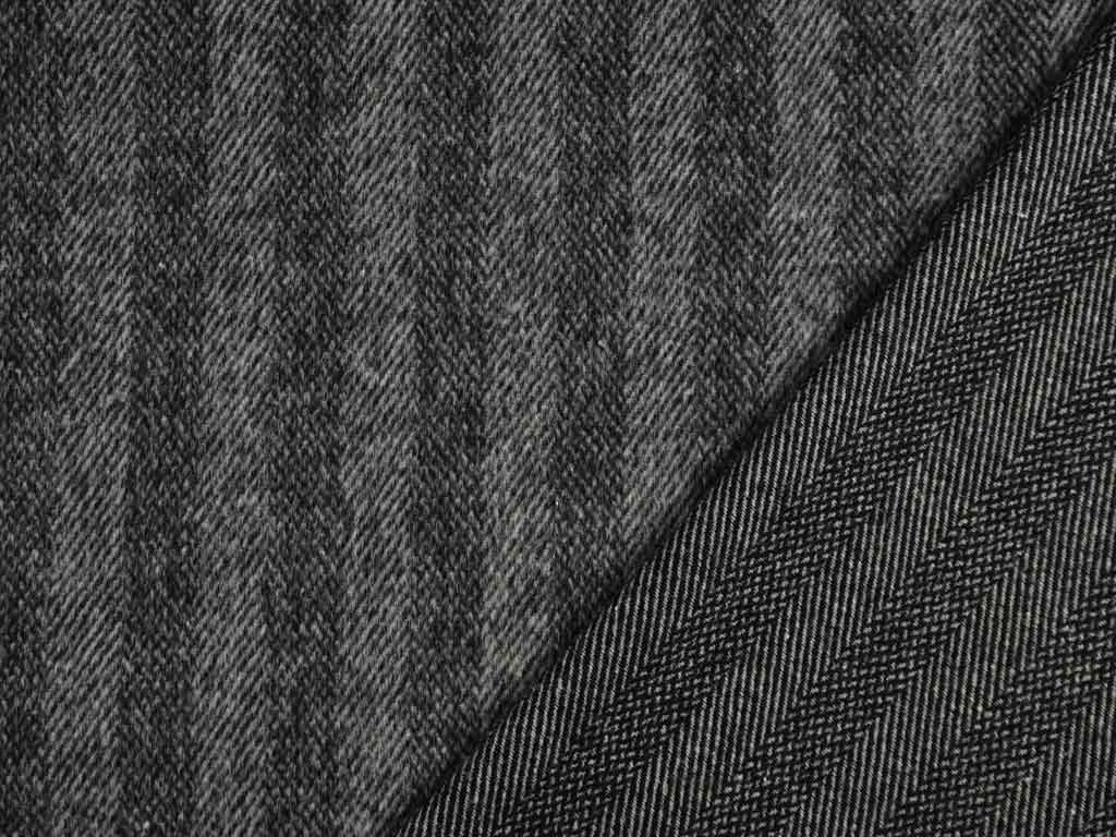 Ein dunkelgrauer, weicher Jackenstoff mit klassischen mittelgrauem Fischgrätmuster in breiten Streifen. Die angeraute Oberfläche ist flauschig und sehr weich. Für dickere/warme Jacken und Mäntel aus diesem Stoff empfehlen wir ein Futter einzunähen. Passende Vorschläge für Futterstoffe finden Sie unter dem Reiter "Kombistoffe/Zubehör".