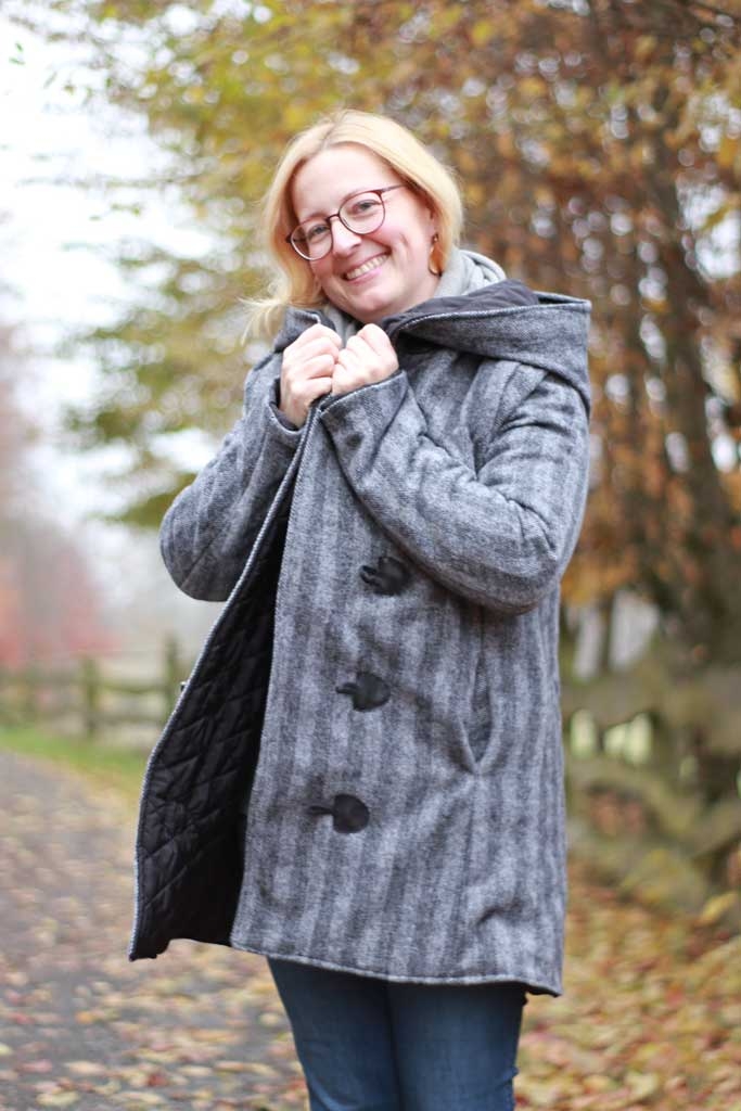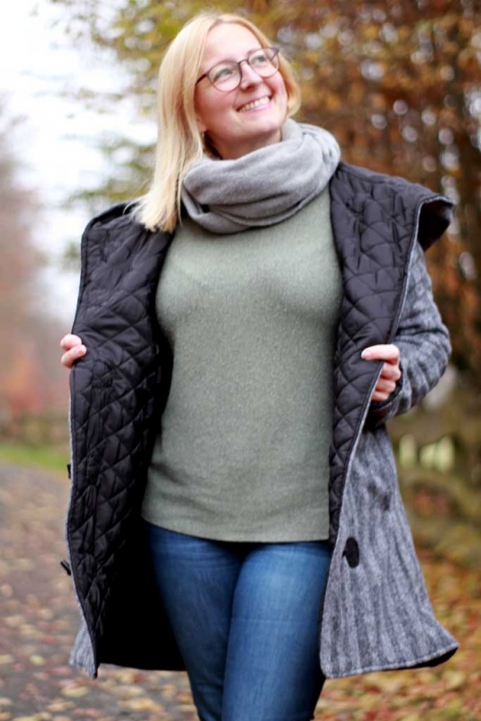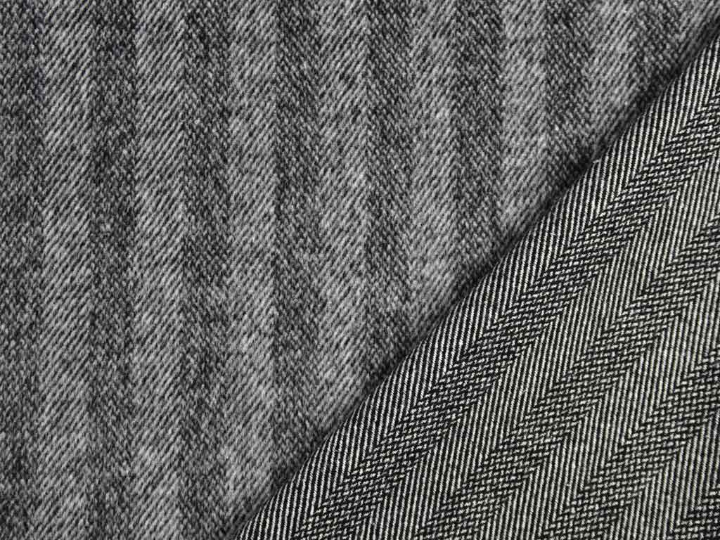 Ein grauer, weicher Jackenstoff mit klassischem, hellgrauen Fischgrätmuster in breiten Streifen. Die angeraute Oberfläche ist flauschig und sehr weich. Für dickere/warme Jacken und Mäntel aus diesem Stoff empfehlen wir ein Futter einzunähen. Passende Vorschläge für Futterstoffe finden Sie unter dem Reiter "Kombistoffe/Zubehör".