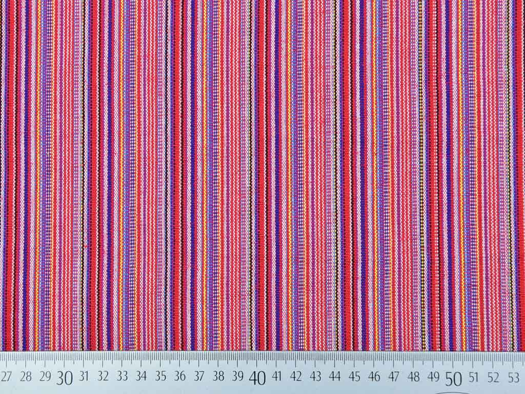 Ein dickerer Stoff, dennoch weich im Griff, mit bunten Streifen im mexikanischen Stil z.B. rosa, gelb, blau, rot