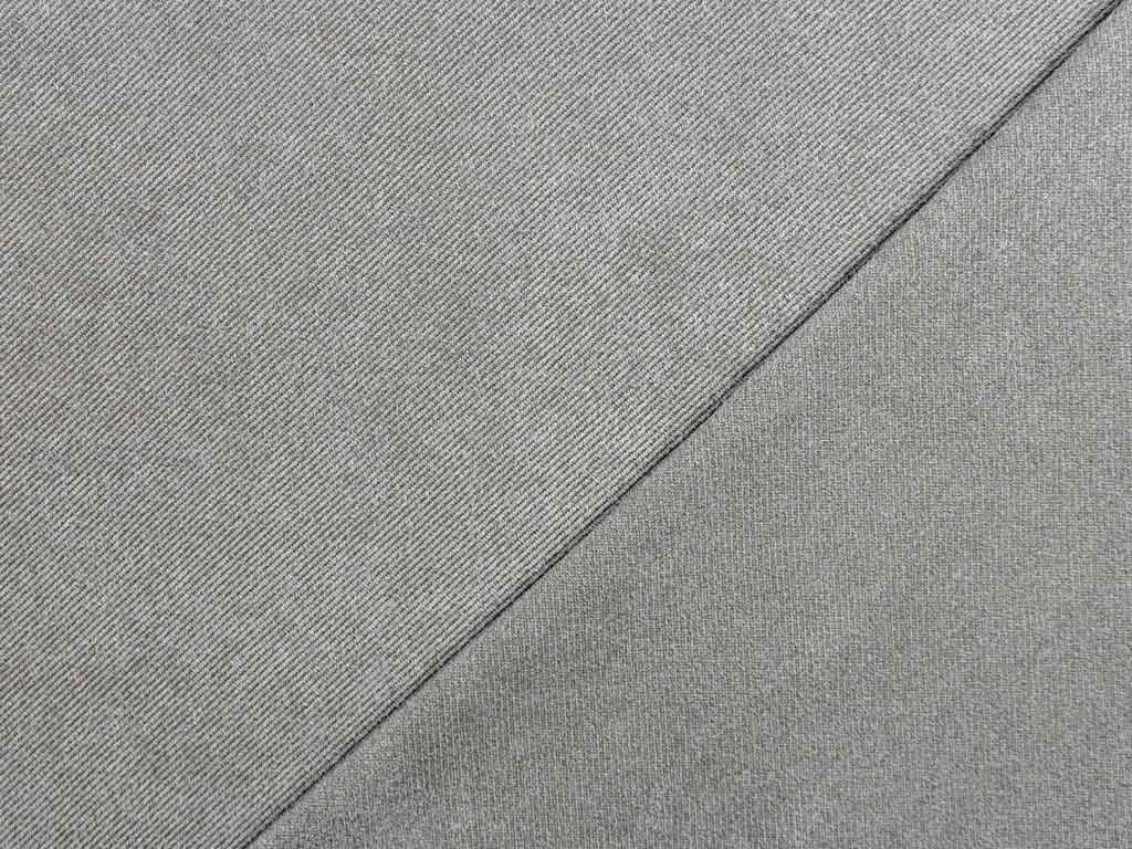 Ein elastischer grauer Twill, dessen Oberfläche leicht angeraut ist und somit an Wildleder erinnert. Der Stoff fühlt sich angenehm auf der Haut an. Durch seine Elastizität bietet er einen hohen Tragekomfort.