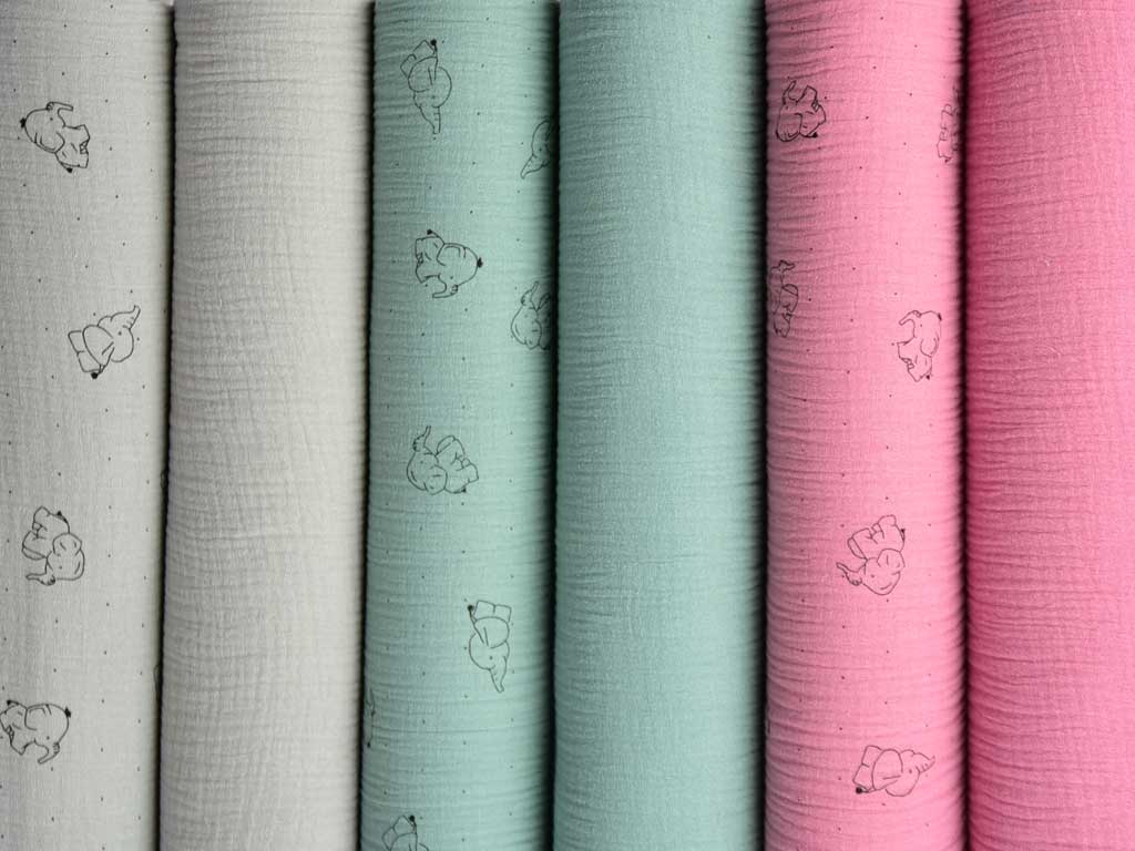 Ein weicher und luftiger, hellgrauer Musselin (Double Gauze).
