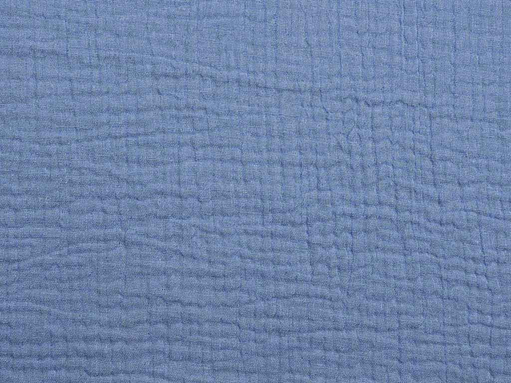 DER angesagte Stoffe der Saison: Musselin!! Die Modewelt hat diesen Stoff neu entdeckt und so werden nicht mehr nur Spucktücher und Windeln daraus genäht, sondern modische Fashion Teile! Hier als weicher Musselin in jeansblau.