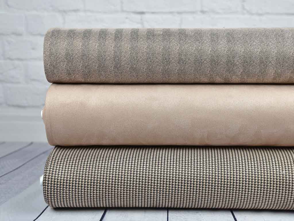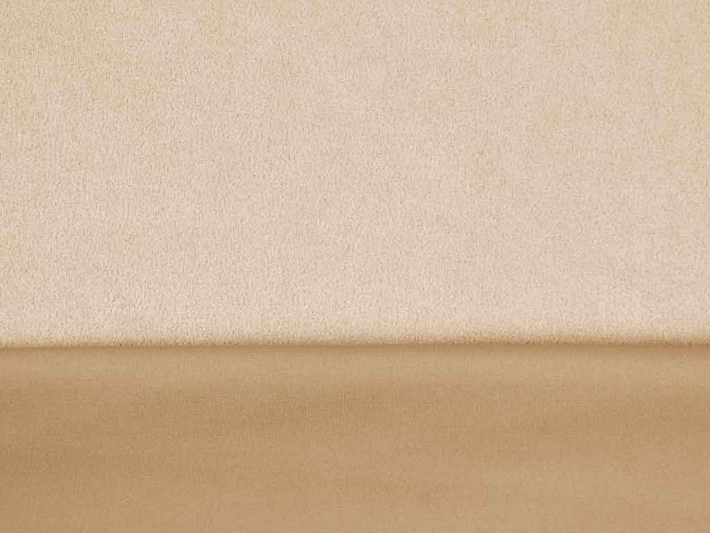 Ein dünner Scuba Stoff in beige mit Wildleder Haptik. Der Stoff erinnert vom Griff an Surfanzügen (daher der Name "Scuba"), denn er ist kompakt, hat einen gewissen Stand und ist aber trotzdem weich im Griff.