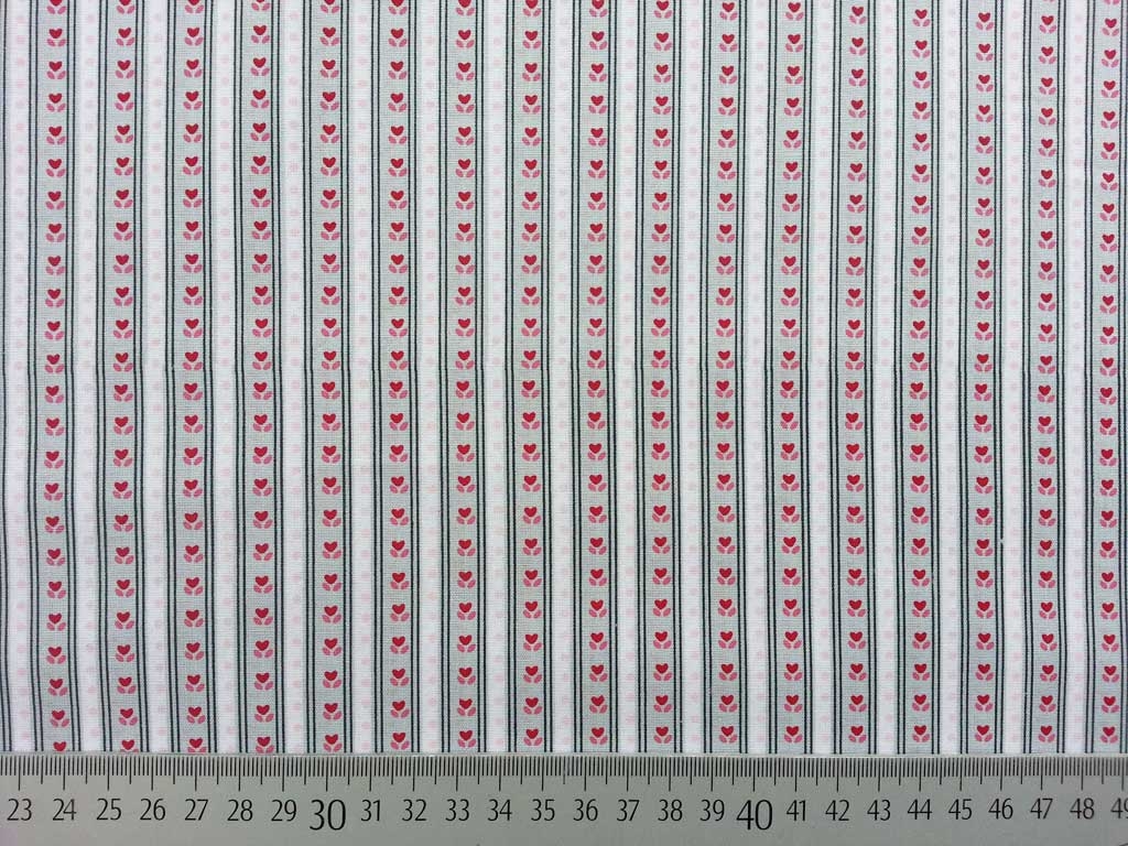 Ein weicher und glatter Baumwollpopelin aus der Serie "Little One" mit gepunkteten Streifen und mini Tulpen auf grau und weiss.