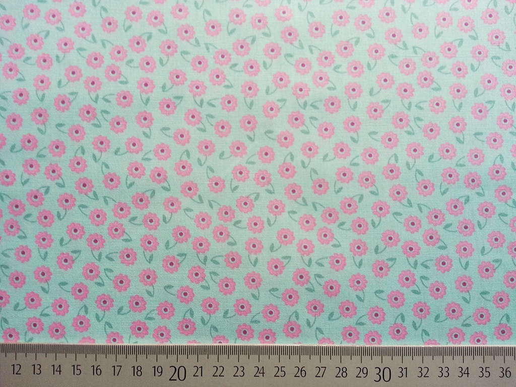 Ein toller Popelin Stoff in mint mit kleinen rosa Blumen mit Stengel.