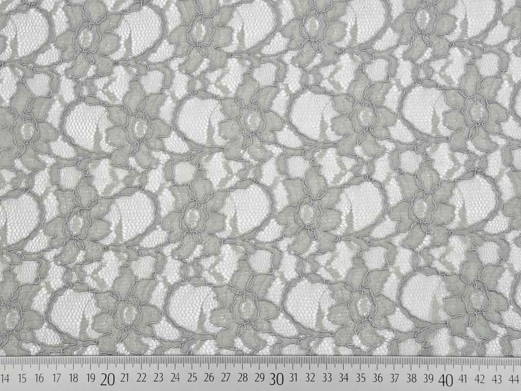 Eine traumhafte Spitze als Meterware in grau mit tollem Blumenmuster.