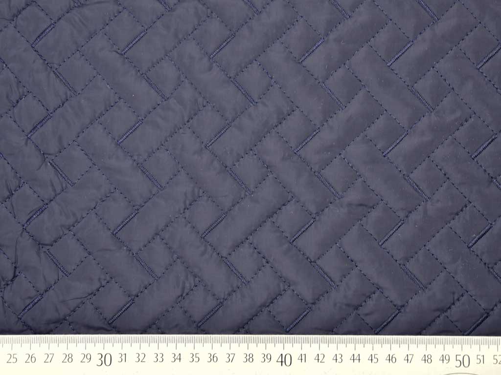 Super schöner gesteppter Jackenstoff in Dunkelblau, mit Volumenvlies abgefüttert und in Rechtecken durchgesteppt. Vorder- und Rückseite sehen fast gleich aus. Das Volumenvlies liegt dazwischen.