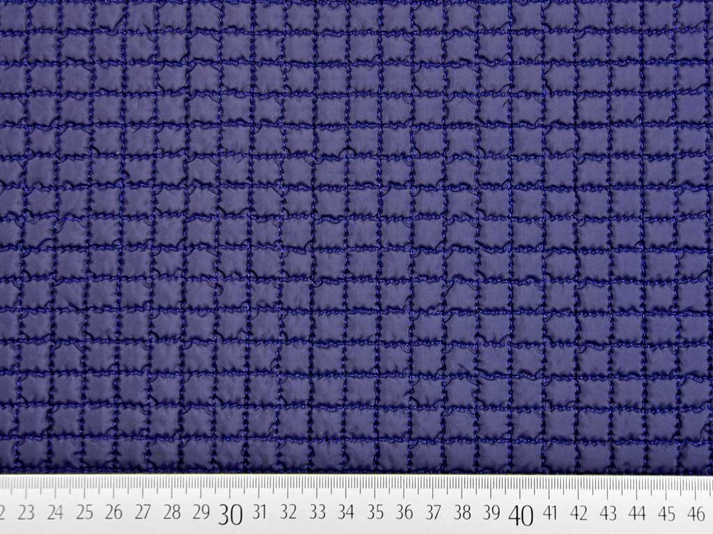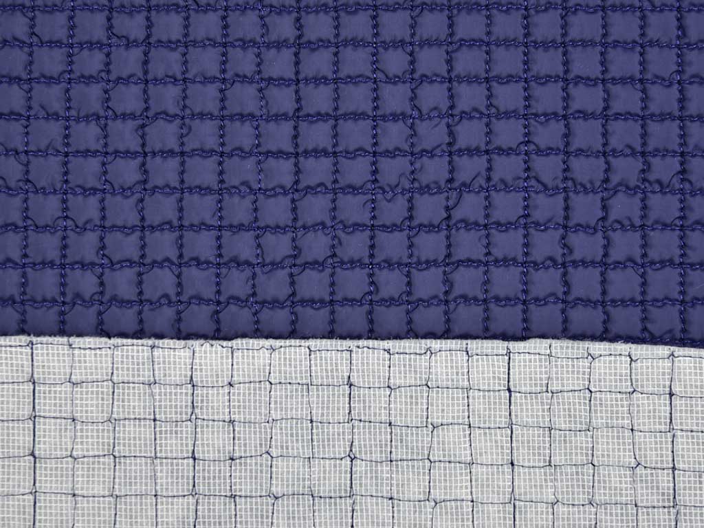Ein wattierter Steppstoff in dunkelblau abgesteppt zu kleinen Quadraten. Eleganter Look!