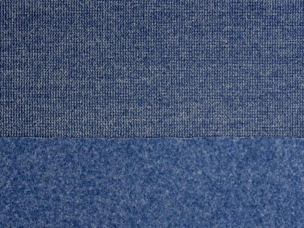 Ein trendiger Strickstoff in dunkelblau melange. Die Rückseite ist angeraut und weich.
