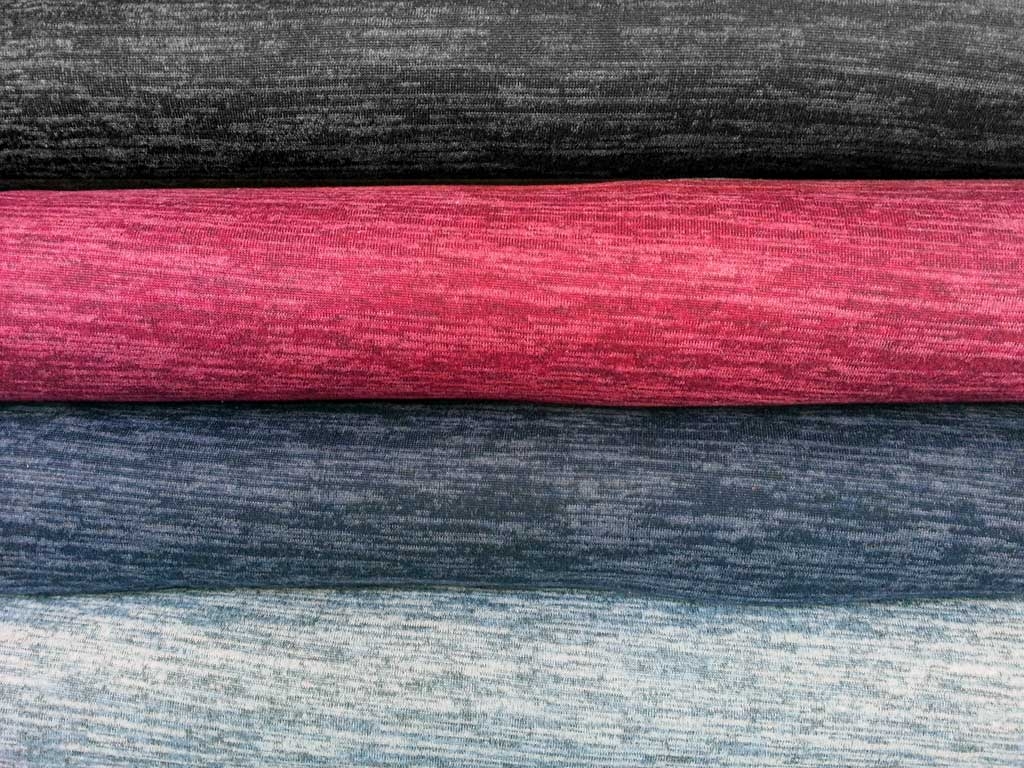 Ein weicher und locker fallender Glattstrick in flieder, pflaume und grau meliert.