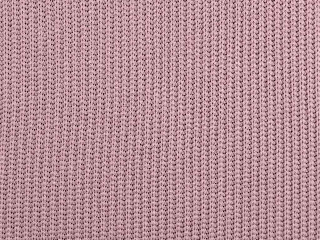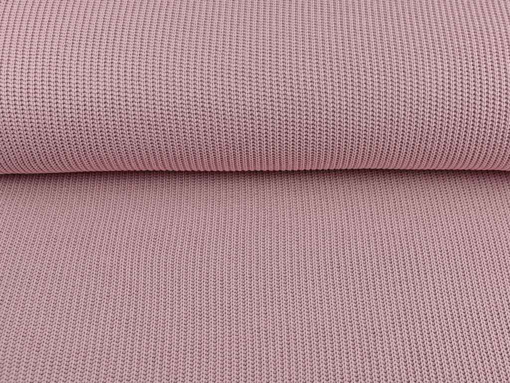 Ein altrosa Strickstoff aus Baumwolle mit Rippenmuster. Dieser gestrickte Baumwollstoff fällt weich und kratzt nicht.