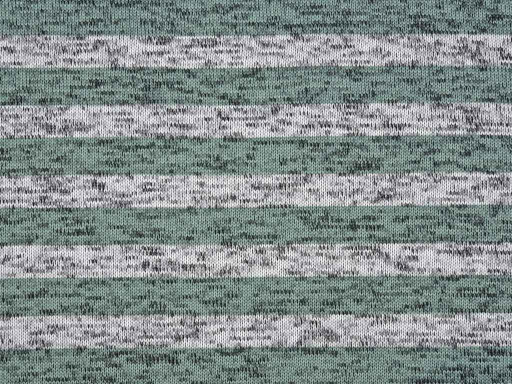 Ein weicher, dicker Strickstoff in grau melange mit mintfarbenen Streifen ( ca. 1,5 cm). Die Rückseite ist angeraut und somit kuschelig weich auf der Haut.