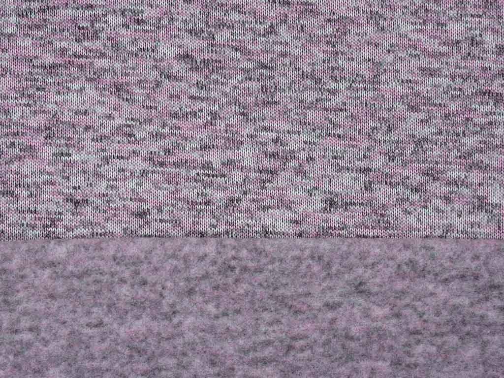 Ein weicher, dicker Strickstoff in rosa grau ecrue meliert. Die Rückseite ist angeraut und somit kuschelig weich auf der Haut.