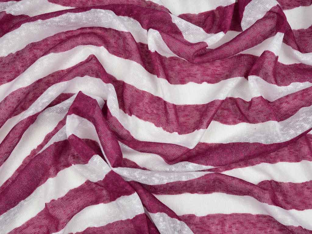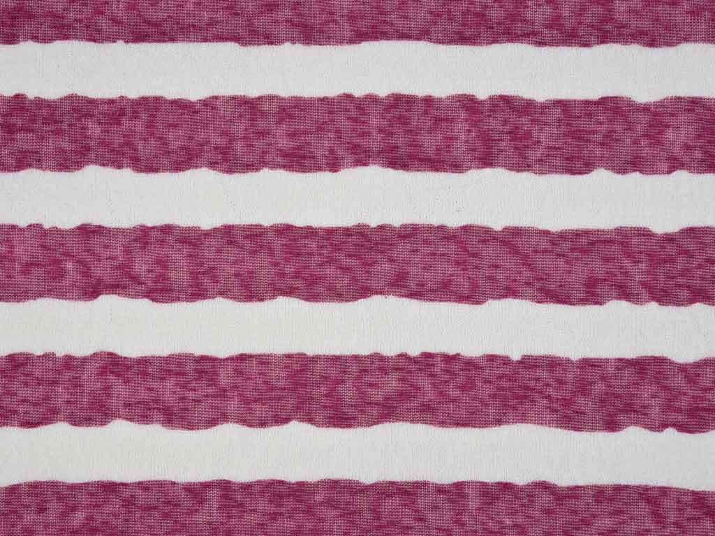 Ein leichter Strickstoff mit 3 cm breiten Blockstreifen in beere und ecrue.