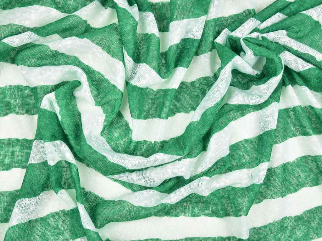Ein leichter Strickstoff mit 3 cm breiten Blockstreifen in grün und ecrue.
