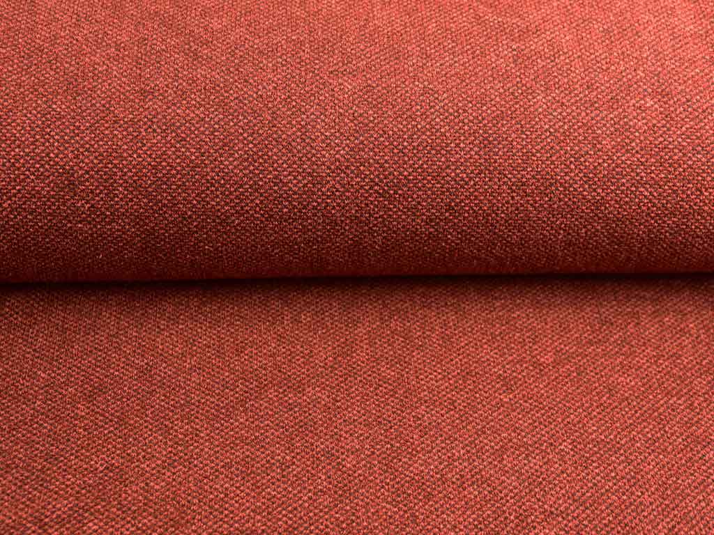 Ein weicher, elastischer Strick in Terracotta mit Perlmuster. Der Strick ist leicht und fällt gut.