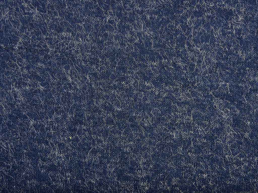 Ein weicher langhaariger Glattstrick in dunkelblau. Die heraushängenden "Haare" sind hellgrau.