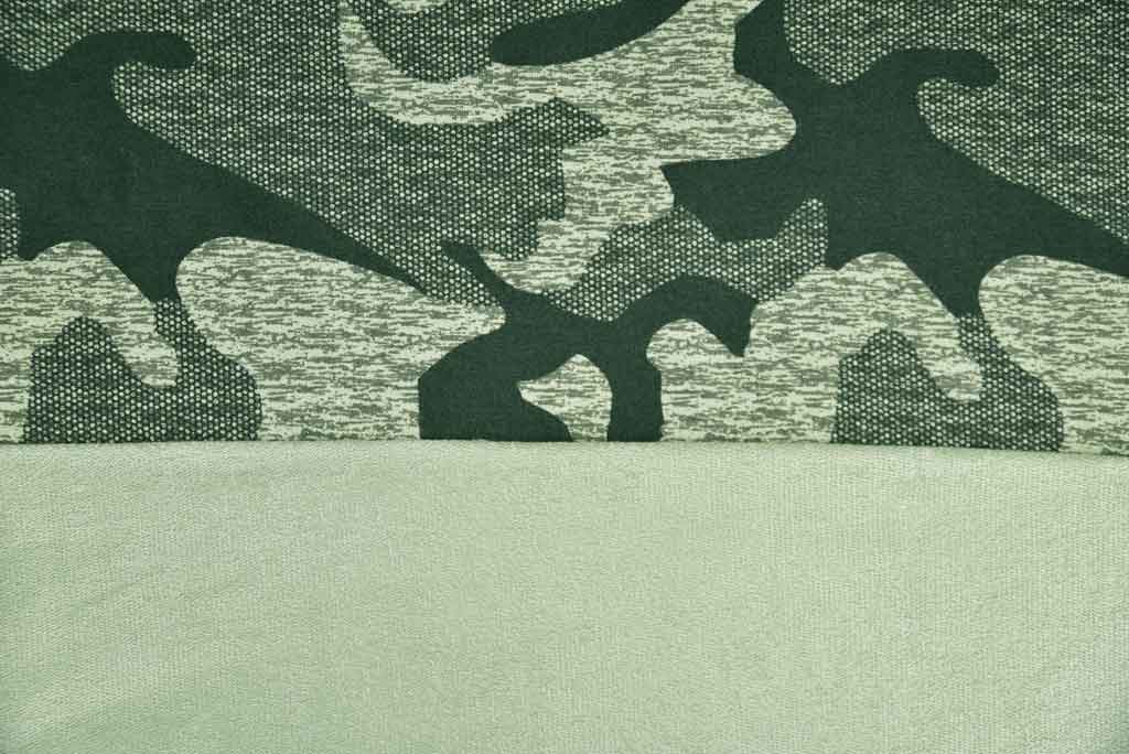 Ein weich fließender French Terry Sweat (Sommersweat) aus Viskose mit khaki-grünem Camouflage Muster. Der Stoff hat einen sehr weichen Griff. Die Rückseite ist nicht angeraut und zeigt die für French Terry Sweat üblichen Schlingen.