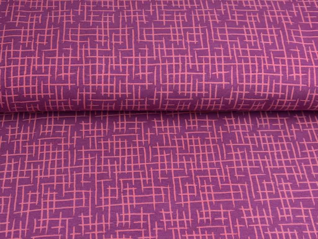 Ein weicher, beerefarbener French Terry (Sommersweat) mit Strichen in dunklem Altrosa. Die Stoffrückseite ist nicht angeraut und zeigt die für French Terry üblichen Schlingen.