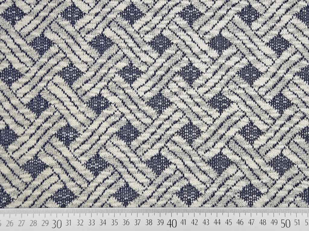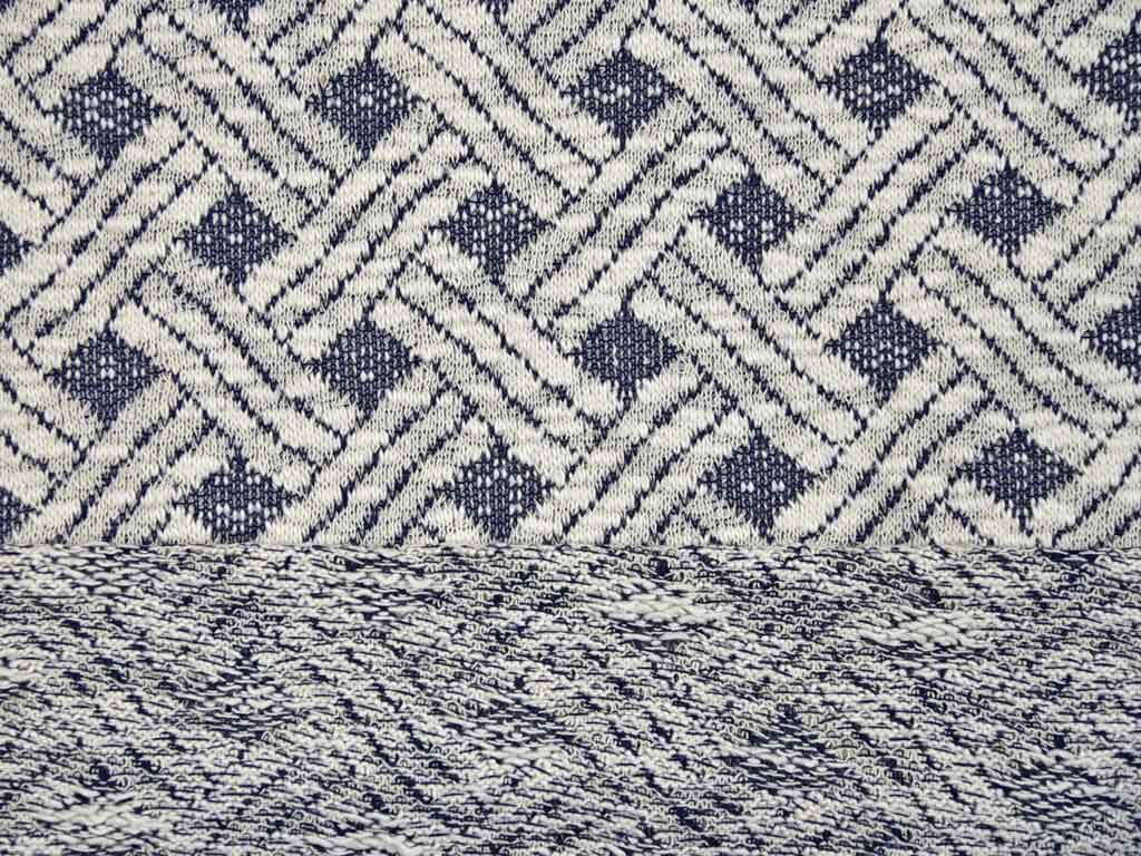 Ein luftig leichter Sweat mit großem Webmuster in ecrue und blaugrau.