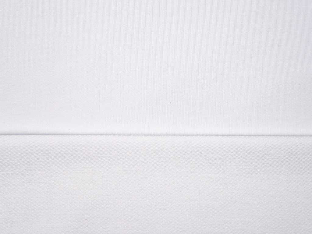 Ein hochwertiger French Terry Sweat in Weiß. Wie bei French Terry üblich, ist die Rückseite nicht angeraut.